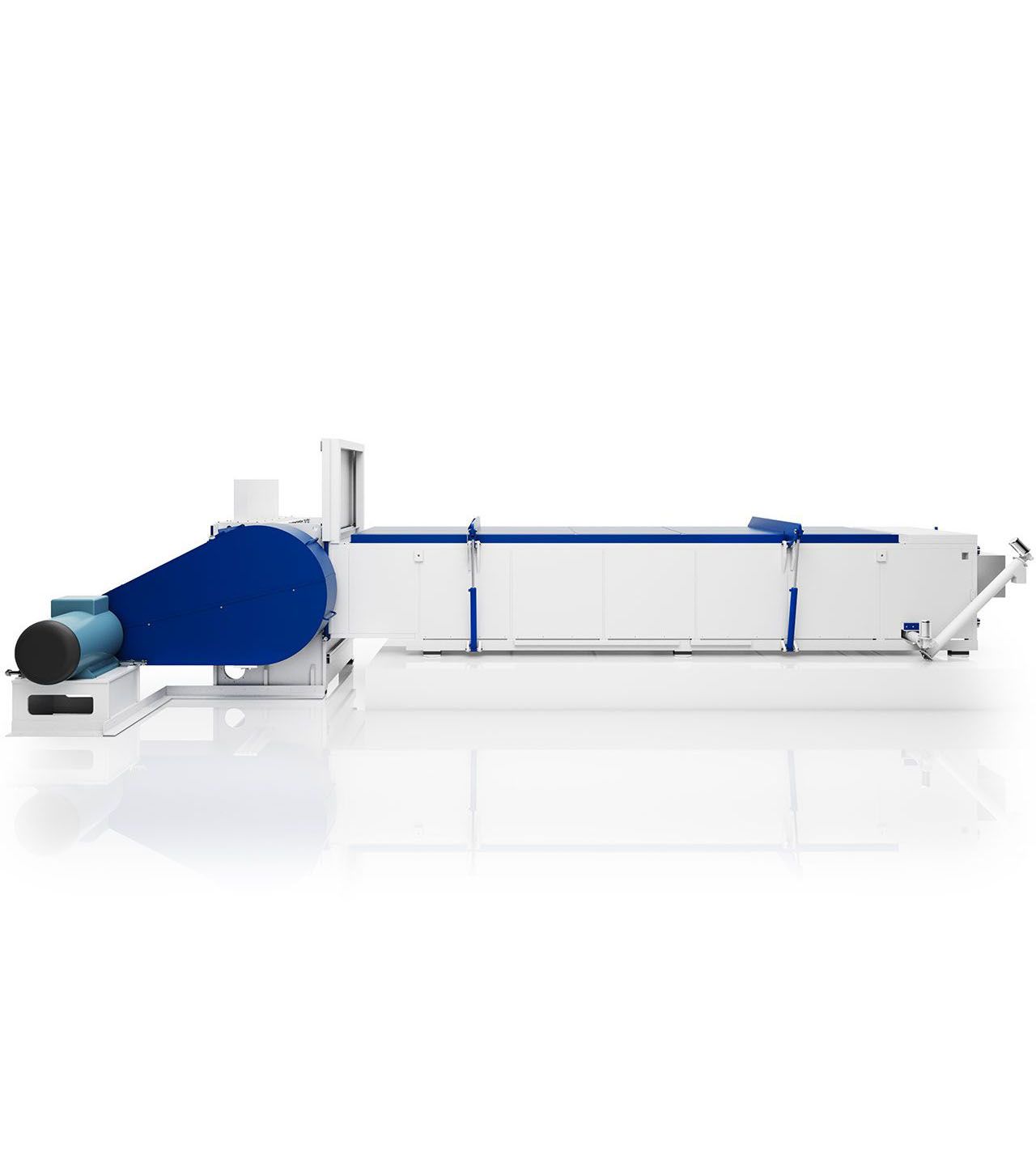 Onestep-Schleifsystem speziell für Rohre und Profile mit großem Durchmesser und hoher Dicke, ohne dass ein Vorzerkleinern erforderlich ist. Es ist möglich, glatte und gewellte Rohre in HDPE, PP und RIGID PVC bis zu einer maximalen Länge von 6 m kontinuierlich zu schleifen. Dies sind äußerst robuste Granulatoren mit einem Rotordurchmesser von 830 bis 1930 mm. Das System besteht aus einer Ladebox mit hydraulischem Verschluss zum Laden der Rohre, die diese automatisch direkt in den Ladebehälter der Mühle gießt. Dabei wirkt ein Materialschieber, indem er das Rohr in Richtung Schleifkammer vorschiebt. Der Vorschub wird entsprechend der Last gesteuert, um eine optimale Nutzung der Maschine zu gewährleisten.